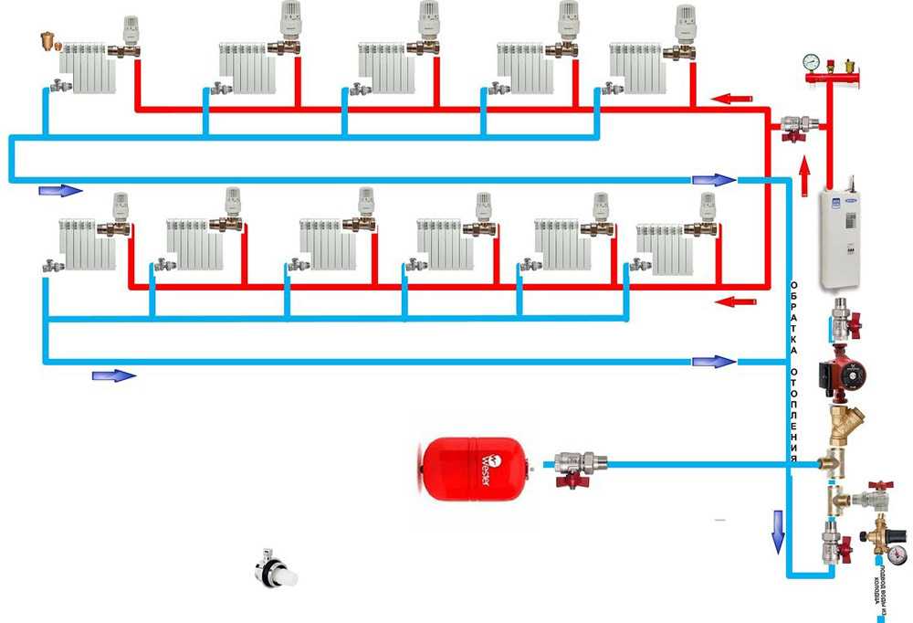 Схемы подключения двухтрубной системы отопления в двухэтажном коттедже