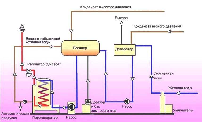 Типовая схема обвязки ПК зависит от типа парогенератора и его рабочих параметров.