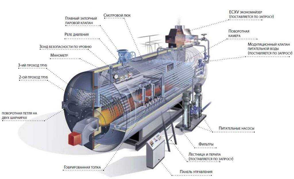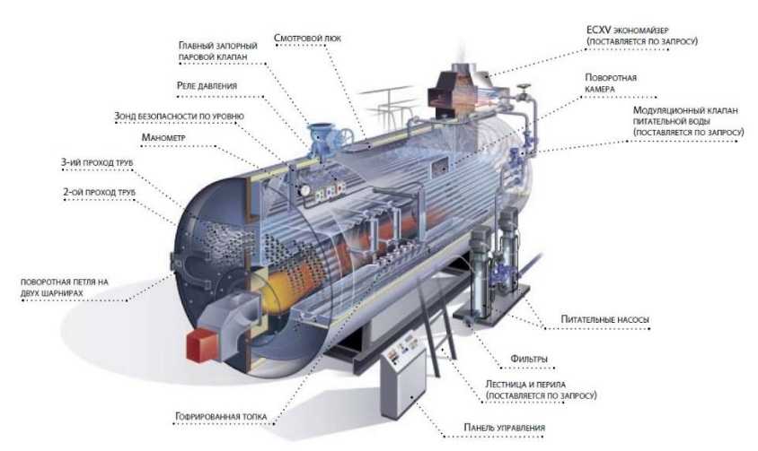 Паровые котлы состоят из основных и вспомогательных узлов и частей, плюс автоматика.
